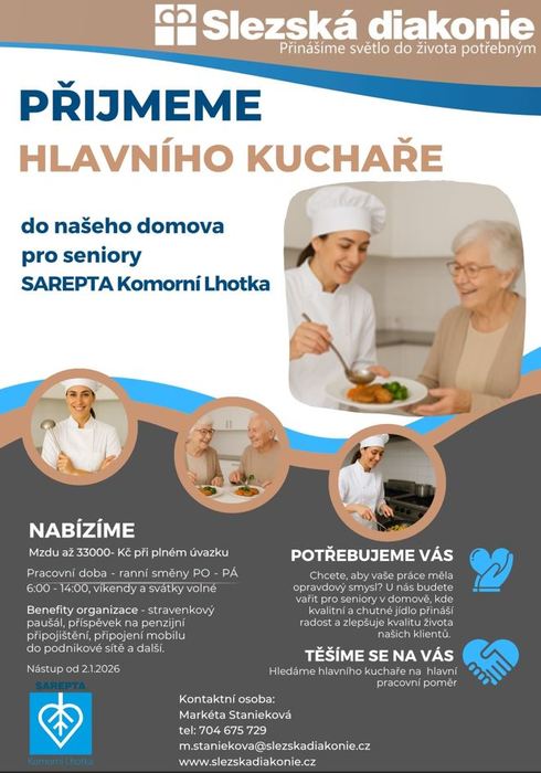 Nabídka práce - kuchař Komorní Lhotka Sarepta